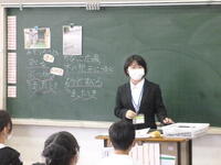 教育実習生の授業です。先日は2組、今日は1組で行いました。身近に発生する怪我の原因とその対処方法について学習しました。怪我の防止と処置について役に立つ内容でしたね。