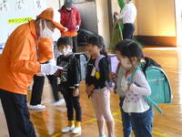 アドバイザーのお話を真剣に聞いて、幼稚園で学んだことをしっかりと発表できましたね。「行かない」「のらない」「大声を出す」「すぐ逃げる」「知らせる」は確実に覚えておきたいですね。地域の皆様、「かけこみ110番の家」掲示にご協力ありがとうございます。学校・地域・家庭が連携して、子どもたちの安全を守っていきたいと思います。