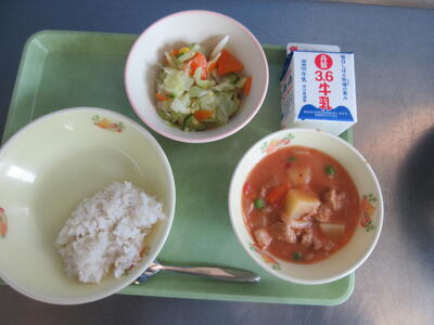 今日から給食も再開です。子供たちは、「今日のメニューはハヤシライスだよ」と嬉しそうに教えてくれました。