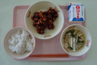 ※5日の休校の関係で、5日(金)のメニューが本日となりました。本日8日のメニューはキャンセルされます。