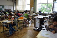 2年生の5時間目は、一つのクラスでは近々転校する仲間へのお別れのメッセージを書いていました。先生のアドバイスを聞きながら、すらすらと鉛筆がすすむ子もいます。もう一つのクラスでは、国語のテストです。どの子も集中して、真剣に取り組んでいました。