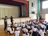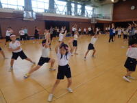 今年度も東レアローズ選手とスタッフの方をお招きし、6年生を対象に、バレーボール体験教室を開催していただきました。子どもたちはグループに分かれ、アンダーパスやオーバーハンドパスのこつを直接指導してもらい、選手と一緒に対人パス練習を楽しみました。また、子どもたちの目の前でデモンストレーションも行っていただき、プロ選手のパスの精度の高さや本気のスパイクの威力を体感することができました。また、希望する子どもたちはコートに入り、選手のスパイクを受ける「チャレンジ体験コーナー」も設けられ、大いに盛り上がりました。さらに、子どもたちの声援を受け、教員チームもこのチャレンジ体験に参加させてもらい、子どもたちと共にしっかり楽しませていただきました。授業の最後には、子どもたちからの質問コーナーにも答えていただき、楽しい授業はあっという間に時間が過ぎました。