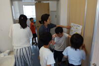 56組の子どもたちが一緒に理科の授業を受けています。今日は、教材キットを使って、電気の働き、モーターを速く回す仕組みについて、体験しながら学びました。ブーンという音と共に勢いよくモーターが回る様子を見て、笑顔がこぼれていました。