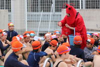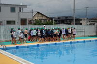 次に、担当の子供たちによって宝がプールに投げ込まれ、まずは男子から入水し、宝取りがはじまりました。この後、女子の部があったようです。外は蒸し暑かったので、プールの中は、とても気持ちよさそうでした。