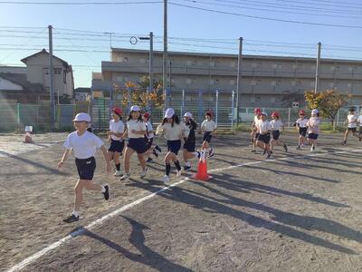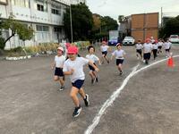 今週から、体力アップを目的にした朝運動がスタートしました。1・2年生は水曜日の朝に、この朝運動を行います。準備運動を行った後で、3分間走を行います。自分がどれ位の距離を走れたのか記録がわかるように、運動場には目安となるコーンが設置されています。今朝は少し肌寒い気温となりましたが、走るのにはちょうどよく、参加した子どもたちは、自分の目標達成を目指し、張り切って朝運動に参加していました。