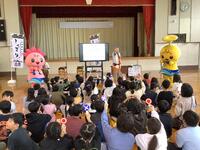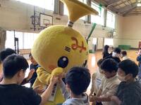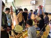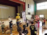 4年生の子どもたちが、郷土の伝統芸能「しゃぎり」について、学んだり体験したりする特別授業を行いました。授業の前半は、しゃぎりにちなんだクイズ問題が出題され、子どもたちは正解や解説に一喜一憂しながら、しゃぎりについて楽しく学んでいました。また、授業後半は、しゃぎりに使用する4つの楽器を実際に触らせてもらい、音を鳴らすことを楽しみました。さらに、講師の方が用意してくださったダンボール製の「すりがね」を組み立て、かねのたたき方を教わると、学年全員でのしゃぎりの演奏体験を行いました。自然に体が揺れる躍動感のあるリズムと威勢のよいかけ声に、子どもたちもすっかり夢中になり、体育館いっぱいに、しゃぎりの音が響き渡りました。今日の授業には、「みしまるくんとみしまるこちゃん」も応援に駆けつけてくれたので、子どもたちは大喜びです。三島に暮らす良さや楽しさもたっぷりと感じることのできた授業で、45分があっという間に過ぎ去りました。関係の皆様、貴重な体験の場を用意してくださり、本日は、本当にありがとうございました。