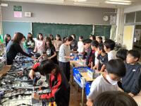 5年生が、社会科学習の自動車工業についての学びを深めるために、今日は特別授業「トヨタスクール」を受けました。外部講師として、トヨタの社員の方が来校され、工場で実際に使用している工具や、働く方が着用する作業服などを実際に身につけたり、触ったりさせてもらいました。また、自動車の組み立てラインを理解するために、指示書を見ながら、決められた時間内に安全に素早く、そして正確に部品を組み立てていく工程を疑似体験しました。子どもたちは、「思っていたよりずっと難しい!」「なんだか焦って、あわててしまう。」「ミスしないでやるのはすごいことだと思う」など、体験を通して気づいたことがたくさんあったようです。トヨタの皆様、本日はありがとうございました。