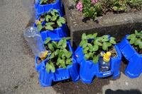 北校舎昇降口前には、1年生のあさがお、2年生のミニトマト、なかよし学級のナス、ピーマンなど、種から芽が出たり苗が大きくなったりしています。「先生、見て見て!芽が出たよ~。」と、1年生が嬉しそうに見せてくれました。