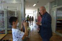 安全会議の終了後、いつも見守ってくださるスクールガードの方々に、4年生の子どもたちが挨拶をしたり、インタビューをしたりしました。4年生は、総合的な学習の時間において、地域の安全についての学習を進めています。