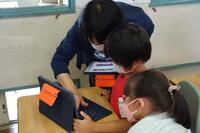 今日は、ICTサポーターさん(毎週、木曜日に来校)に支援してもらいながら、タブレットの操作を学習しました。画面が変わると、「わあ!すごい!」「あ!変わった!」などの歓声があがりました。