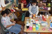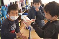 中郷大ぼうけんでは、2年生からお店を出します。初めてのお店は、生活科の「動くおもちゃ」がテーマのようです。「これはね、動くヨットだよ」「こんなにたくさんできたよ」「今ね、受付の看板を作ってるの」と、自分の役割をうれしそうに説明してくれました。