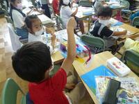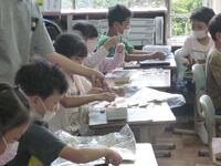 図工の授業で簡易バッグを作成しています。紐を結びつける作業です。意外と結ぶことに苦戦をしていました。自分で試行錯誤してできたやり方を、他の友達と共有します。いろいろなやり方の長所や短所を話し合っている姿が見られました。