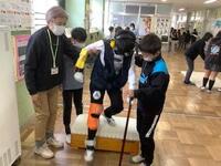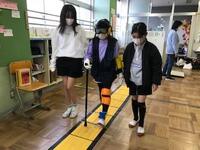 4年生は、総合的な学習の時間で、福祉について学習しています。今回は、高齢者体験をしました。ヘッドホン・ゴーグル・おもりなどを装着し、普段との見え方や聞こえ方の違いや、動きにくさなどを体感しました。「小さな段差が怖いね。」「死角が多い。」「思うように手が動かない。」「靴下をはくのが大変そう。」「体が重い。」などの意見が飛び交いました。