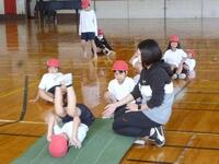 体育のマット運動です。先生の補助や助言を生かしながら、各自の状況に応じて活動に取り組んでいました。「できた!」「見てください!」達成感に溢れた声が飛び交っていました。