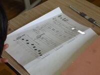 音符の学習です。なかなか難しく、教え合ったりしながら課題を完成していました。実際の音と音符が一致してくると音感が高まり、歌唱力や鑑賞力につながっていきます。基礎基本の一つとして、これからも大切に学んでいきましょう。
