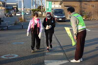 学校西側、梅名の歩道橋付近の様子です。スクールガードの方が、毎朝、子どもたちに声を掛けてくださいます。