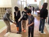 4年生の福祉教育プログラムの3回目です。前回、座学で高齢者について学びましたが、今日は実際に、疑似体験する内容です。聴覚(イヤーマフをつけて聞こえにくさを体験)、視覚(白、黄、黒のフィルムをつけたゴーグルをつけて見えにくさを体験)、触覚(軍手をつけて文字を書いたり、紙を折ったりし、動かしにくさを体験)などの体験をした後に、最後に、「歩きにくさ」を体験として、片足には動きを制限するプロテクタ、目にはゴーグル、手には杖をもって、障害物を乗り越えたり、不安定な場所を歩きました。子どもたちは、キャッキャと楽しみながらも、高齢者の方が感じやすい身体機能の不自由さを身をもって感じていました。実体験から学ぶ、とてもよい時間となりました。