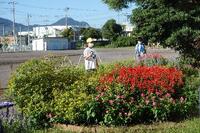 1年生の花壇の様子です。夏の暑い頃にはやや元気がなかったマリーゴールドも、元気に咲いています。
