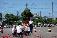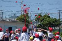 青い空に、赤と白の玉が舞って、とてもきれいでした。チェッコリの踊りが、上手でした。応援席から「かわいい!」「がんばれ~。」と控えめな声が聞こえてきました。