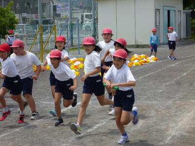 リレーのバトン練習です。どこでスタートを切るか?もらい方は?など、自分たちで考えて練習する姿がとてもよかったです