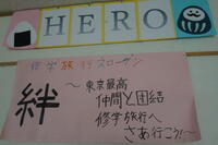 5年生は算数の多角形の学習です。今日はまとめの演習に取り組んでいました。どの子も集中して問題に向き合っていて立派です。6年生が通る階段の踊り場には、修学旅行のスローガン掲げられました。カウントダウン・カレンダーも作られ、気分を盛り上げていきます。