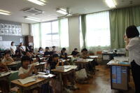 3年生の教室では、タブレットでタイピングの練習です。ローマ字を学んだので、ローマ字入力の練習がどんどんできるようになります。タブレットの活用では、タイピングの力が一丁目一番地。たくさん練習してくださいね。4年生は、外国語で文房具の言い方の練習をしていました。Robertという音声を「ロバ」「ロボ」と聞こえて、思わずニッコリしている様子が微笑ましかったです。