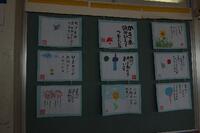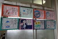 6年生の教室やワークスペースには、作品が掲示・展示されています。今日から個別面談が始まりますので、お子さんの作品を見てください。