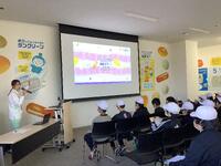 午後からは、ファンケル美健 三島工場様にお邪魔して、サプリメントの製造過程について学ばせていただいています。まず、工場でつくっているサプリメントや工場についての説明を、動画で紹介してもらいました。