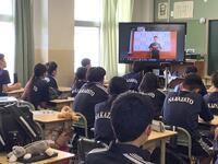 各クラスをzoomで結び、生徒会本部からスローガン発表や係の説明などが行われました。