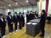 今年度の生徒会役員から次年度の生徒会役員の引き継ぎも行われました。