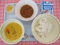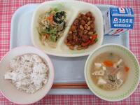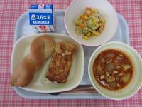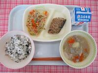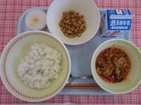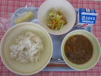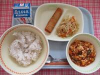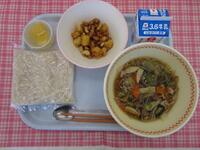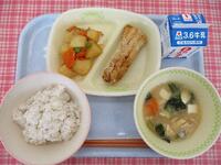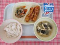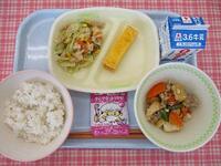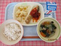 ※カラフル卵焼きの予定でしたが、調理場の調理器具の不具合により、鶏のから揚げに献立を変更しています。