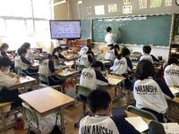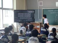 本日1時間目に、教育実習生の三角さんが研究授業を行いました。生徒は近畿地方について学習し、京都市の歴史的町並みを保全することに賛成か反対かを議論しました。