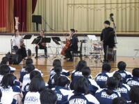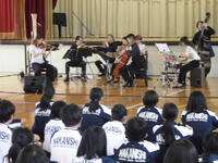 東京アーティスツ合奏団をお招きして、学校巡回公演がありました。5時間目に1年生、6時間目に2年生が演奏や歌を鑑賞しました。有名なクラシック曲だけでなく、楽器の紹介やディズニーメドレーやビリーブなど生徒がよく知っている歌なども聴くことができました。すばらしい音楽に癒やされた時間になりました。ありがとうございました。