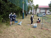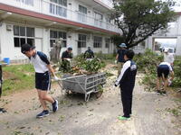 樹木剪定を行いました。学校応援団の方や地域のボランティアの方、PTA環境整備部の方、ボランティアとして参加してくれた生徒も含めて、普段なかなかできない部分の環境整備を行いました。大変暑い中、高木の剪定までご協力いただきありがとうございました。ボランティアの生徒も、みんなとても熱心に取り組んでくれ、時間を過ぎても活動している生徒もいました。大変清々しい思いです。ありがとうございました。