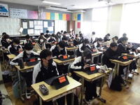 明日の入学試験を前に、事前指導を行いました。最初に、校長、学年主任、進路指導担当から話をした後、受験する高校別に説明を行いました。明日、受験する全生徒が自分のベストを尽くして頑張ってください!