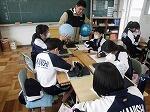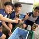 写真は、双眼実体顕微鏡を使う1年生の皆さん