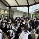 雨が降る中でしたが、先ほどバスで学校を出発しました。