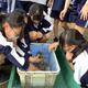 小さな生け簀に入れた伊勢海老、サザエ、アワビを実際に手に取り、命を実感することができました。彼等は今晩、生徒の皆さんの食卓に登ります。