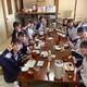 写真は、小グループで相談しながら考える1年生の皆さん。