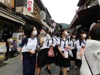 1組は清水寺に参拝し、お土産も購入しました。清水寺近くの湯豆腐屋さんでお昼ご飯を食べました。