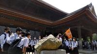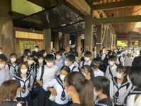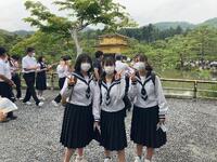 1組の最後の見学地は金閣寺です。雨上がりで蒸し暑くなってきましたが、なんとか傘のお世話にはならないですみました。