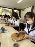 手捻り体験中の様子です。それぞれが記念に残る作品になりました。