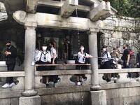 清水の舞台からの景色を楽しみ、音羽の滝の水を飲む。