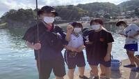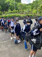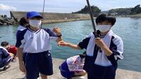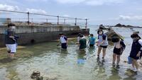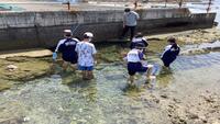 磯観察前に早く着いた生徒が、「だるまさんが転んだ」で楽しんでいます。