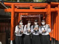 1組は伏見稲荷にお参りしています。千本鳥居をくぐって奥社まで来ましたが、混雑でおもかる石には挑戦できませんでした。