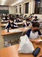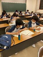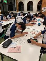 夕食後の研修時間です。今日一日の振り返りと新聞づくりに真剣に取り組んでいます。