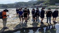 竜宮島に渡り、ウツボも発見して大喜びの生徒達でした。