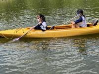 班別研修のチェックポイントであるカヌー乗り場では、苦労しながらも楽しむ生徒の姿がたくさん見られました。