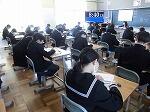 写真は、ガイダンスを受ける生徒の皆さん(右下の写真は、体育館で行った保健体育の授業)