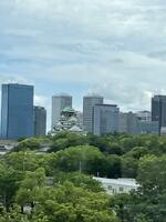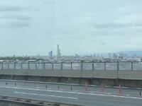 大阪から奈良に向かう途中で、あべのハルカスと大阪城が見えました。